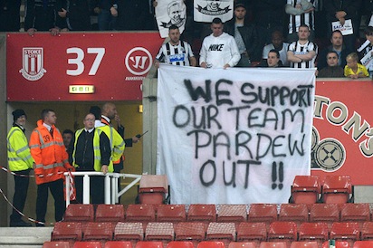 Нюкасъл допусна нова загуба във Висшата лига и остана в зоната на изпадащите с едва 3 точки след 6 изиграни мача. "Свраките" отстъпиха с 0:1 при визитата си на Стоук Сити и това почти сигурно ще доведе до уволнението на мениджъра Алън Пардю. Единствения гол в мача отбеляза Питър Крауч в 15-ата минута, а феновете на гостите недвусмислено показаха с плакати и скандирания, че иската Пардю час по-скоро да бъде освободен.