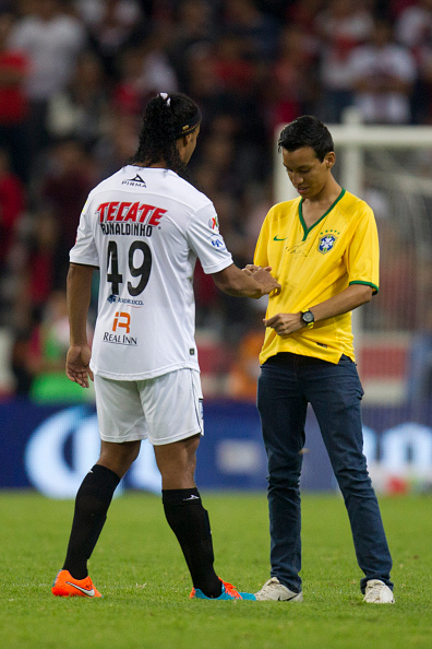 Любопитно за отбелязване е и нахлуването на терена на фен, който веднага се насочи към Роналдиньо и получи автограф на фланелката от бразилеца.