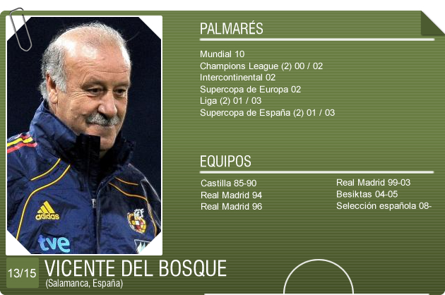 Жестовете определят Висенте дел Боске като спокоен човек, думите – като разумен треньор. Тихомълком той се превърна в най-великия треньор в историята на испанския, и може би не само, футбол. Той е паузата в колективната истерия. Времето възнаграждава рано или късно добре свършената работа. На него – единствения победител в Шампионската лига, европейско и световно първенство, то даде пълна с отличия витрина.