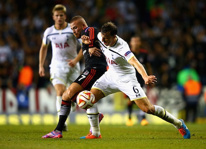 Двата отбора се бяха срещали в евротурнирите само веднъж - през сезон 2006/07, когато Тотнъм спечели с 2:0 за Купата на УЕФА, а един от головете бе дело на Димитър Бербатов. От тогавашния състав на "шпорите" в е останал само Аарън Ленън. Крилото не започна като титуляр, но се появи малко след почивката на мястото на Паулиньо.