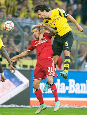 Гостите от Хамбург създадоха по-опасните голови положения през първата част. Още в 12-ата минута Николай Мюлер не бе далеч от реализирането на попадение във вратата на Роман Вайденфелер, но не уцели вратата на дортмундци, след като нахлу опасно в наказателното поле на "жълто-черните".