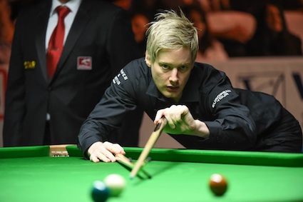 Вторият мач днес се оказа непреодолимо препятствие и за финалиста от турнира през миналия сезон Нийл Робъртсън. Австралиецът претърпя поражение с 1:4 срещу 40-годишния Джерард Грийн. Машината от Мелбърн победи Стивън Холуърт в първия си двубой, но след това не намери начин да противодейства на Грийн. Опитният северноирландец, който е 43-и в света в момента, блесна със сенчъри брейк от 122 точки за 1:0, след което измъкна и накъсания втори фрейм. В третата част също липсваха силни точкови серии, но Грийн все пак взе партията - 3:0. Робъртсън напомни за себе си със сенчъри брейк от 133 точки за 1:3, но това не промени изхода на двубоя. Грийн направи няколко кратки серии в петия фрейм и се поздрави с крайната победа.