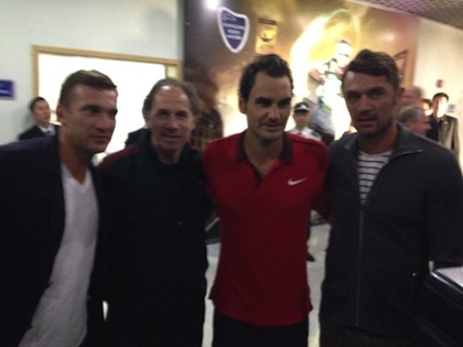 Две легенди на Милан гледаха на живо вчера мача на Роджър Федерер от 1/8-финалите на турнира от серията "Мастърс" в Шанхай с испанеца Роберто Баутиста Агут. 33-годишният швейцарец надигра съперника си с 6:4, 6:2, а във втория сет спечели една точка, в която бе притиснат до стената и трябваше да показва отлична игра в защита. След края на разиграването телевизионните камери показаха намиращите се на трибуните Андрий Шевченко и Паоло Малдини, които изглеждаха впечатлени от изпълненията на Федерер.