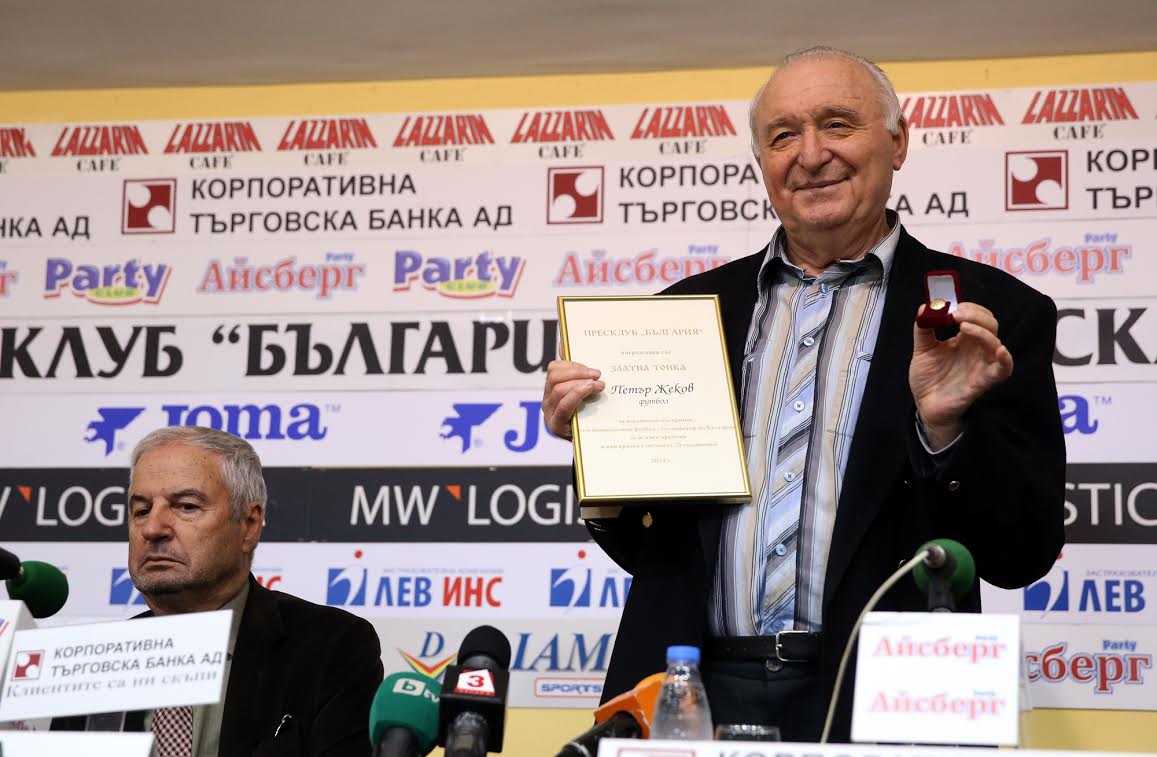 Големият Петър Жеков навършва 70 години днес. В чест на своя юбилей голмайстор №1 на "А" група за всички времена бе награден от Пресклуб "България" със символична "Златна топка" и грамота за изключителен принос към българския футбол.