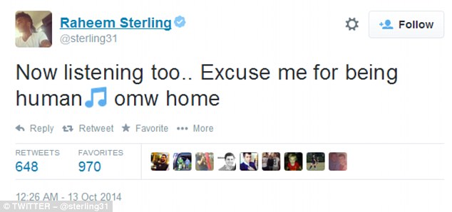 "Сега слушам… Извинете ме за това, че съм човек. На път към дома", написа в социалната мрежа "Туитър" младият национал на Англия. Тези думи обаче не омилостивиха феновете на "трите лъва" по отношение на умората на Стърлинг. Част от коментарите на неговите последователи в социалната мрежа продължиха да бъдат негативни, като няколко от привържениците дори го призоваха да опита да става всеки ден в 5 часа сутринта за работа и тогава да види колко ще бъде изморен.