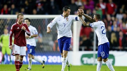 Суперзвездата на Португалия Кристиано Роналдо отново показа колко важен е за националния отбор на родината си. С негов гол в 5-ата минута на добавеното време "мореплавателите" надвиха с 1:0 Дания като гост и записаха първа победа в квалификациите за Евро 2016. Роналдо се оказа на точното място след перфектно центриране на Рикардо Куарешма и матира Каспер Шмайхел.