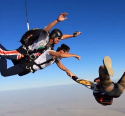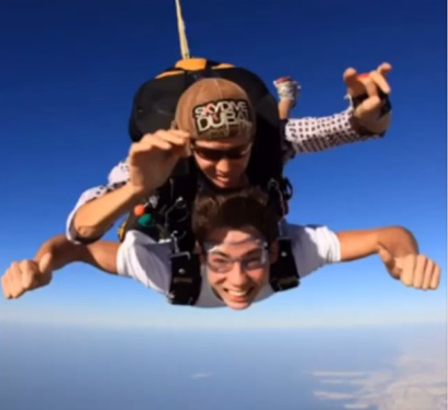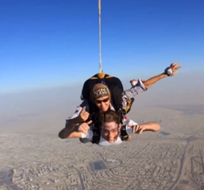 Все пак Зизу не спира да се забавлява, като реши да скочи с парашут заедно със синовете си Енцо (19 г.), Лука Тони (16) и Тео (12), които също играят в различните възрастови групи в школата на Белия балет. Естествено, с тях бяха опитни инструктори.
