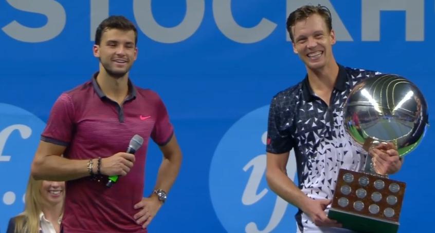 Най-добрият български тенисист и поставен под №2 в схемата на турнира в Стокхолм Григор Димитров не успя да защити титлата си в шведската столица след поражение с 1:2 сета - 7:5, 4:6, 4:6 от лидера в схемата и седми в света Томаш Бердих. В изключително оспорван мач, продължил 2 часа и 20 минути, Григор Димитров допусна обрат срещу игралия по фантастичен начин в този мач Бердих. Чехът сдаде първия сет, в който при 5:4 сервираше за спечелването му, но след това демонстрира невероятно стабилна игра и с по един пробив в подаването на Григор, спечели следващите две части с 6:4 и 6:4. Бердих заби 13 аса срещу 8 на Григор, а освен това допусна и само една двойна грешка срещу три на своя опонент. Показателен момент за целия мач бе финалната точка, в която Бердих завоюва своята титла. На втори сервис той наниза своя 13-и ас в мача със скорост на изпълнението си от 209 километра в час.