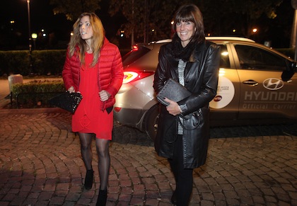 Те влизаха на партито по син килим. Италианката Пенета впечатли с класическа малка черна рокля и палто в същия цвят.