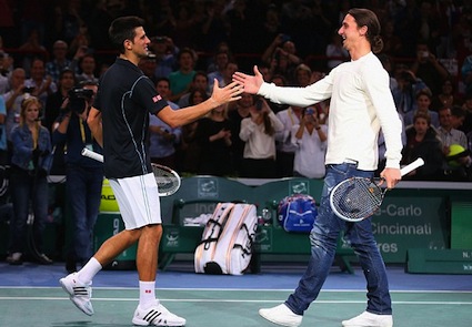 По време на миналогодишния "Мастърс" в Париж Ибрахимович излезе на корта и поигра за кратко с Джокович.