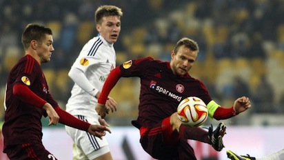 Динамо (Киев) показа характер срещу Олборг и победи датчаните с 2:0, макар че още при 0:0 остана с човек по-малко след червен каротн на Александър Драгович. По точи начин украинският гранд оглави класирането в група "J" на Лига Европа с 9 точки. Втората позиция се заема от Стяуа. Румънците стигнаха до драматично равенство 2:2 като гост на Рио Аве с гол на Лучиан Филип в третата минута на добавеното време.