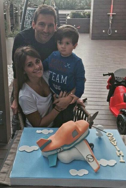 Днес първородният син на Лионел Меси - Тиаго, става на две години. Аржентинският футболен феномен пожела да сподели част от щастливия миг със своите симпатизанти. Лео пусна снимка във Facebook с половинката си Антонейя, Тиаго и празничната торта.