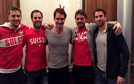 В същото време отношенията между двамата съотборници в състава на Швейцария преди финала за "Купа Дейвис" тази седмица изглеждат загладени. В мрежата се появи снимка на тима, на която двамата са един до друг и Вавринка дори си е направил шега, слагайки "заешки ушички" на Федерер. Единственият въпрос в момента остава дали Роджър ще бъде готов за мачовете, след като се отказа от участие във финала в Лондон срещу Новак Джокович заради контузия в гърба.