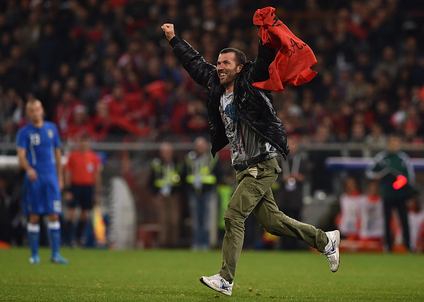 Двубоят отново беше използван за политическа агитация. Албански фен нахлу на терена с национален флаг, за да поиска автограф.