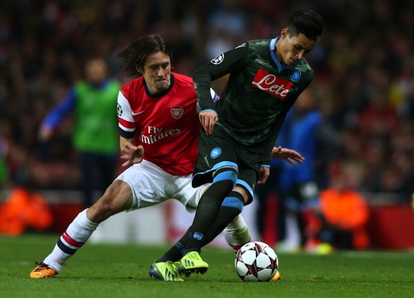 В началото на второто полувреме Томаш Росицки пропусна да реши всичко с трети гол за Арсенал. Лондончани контролираха събитията на терена, а Рафаел Бенитес потърси повече острота в атака с включването на Дрис Мертенс на мястото на Пандев. Италианците заиграха по-добре, но все така не успяваха да излязат на чиста позиция. Защитникът Лоран Косиелни беше близо до това да направи победата на Арсенал класическа, но Рейна спаси негов удар от няколко метра.