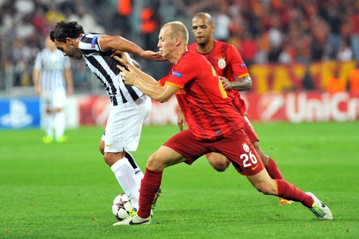 инфарктни финални минути. Гостите първи откриха резултата в 36-ата минута с гол на Дидие Дрогба, но "бианконерите" направиха пълен обрат с попадения на Артуро Видал от дузпа в 79-ата и Фабио Куалярела в 87-ата минута. И когато италианците вече се виждаха победитеи в мача, в 88-ата минута Юмит Бюлут отново възстанови равенството за крайното 2:2. Това пък бе дебютен мач за Роберто Манчини начело на турския шампион, който вгорчи живота на отбора, който подкрепя от дете.