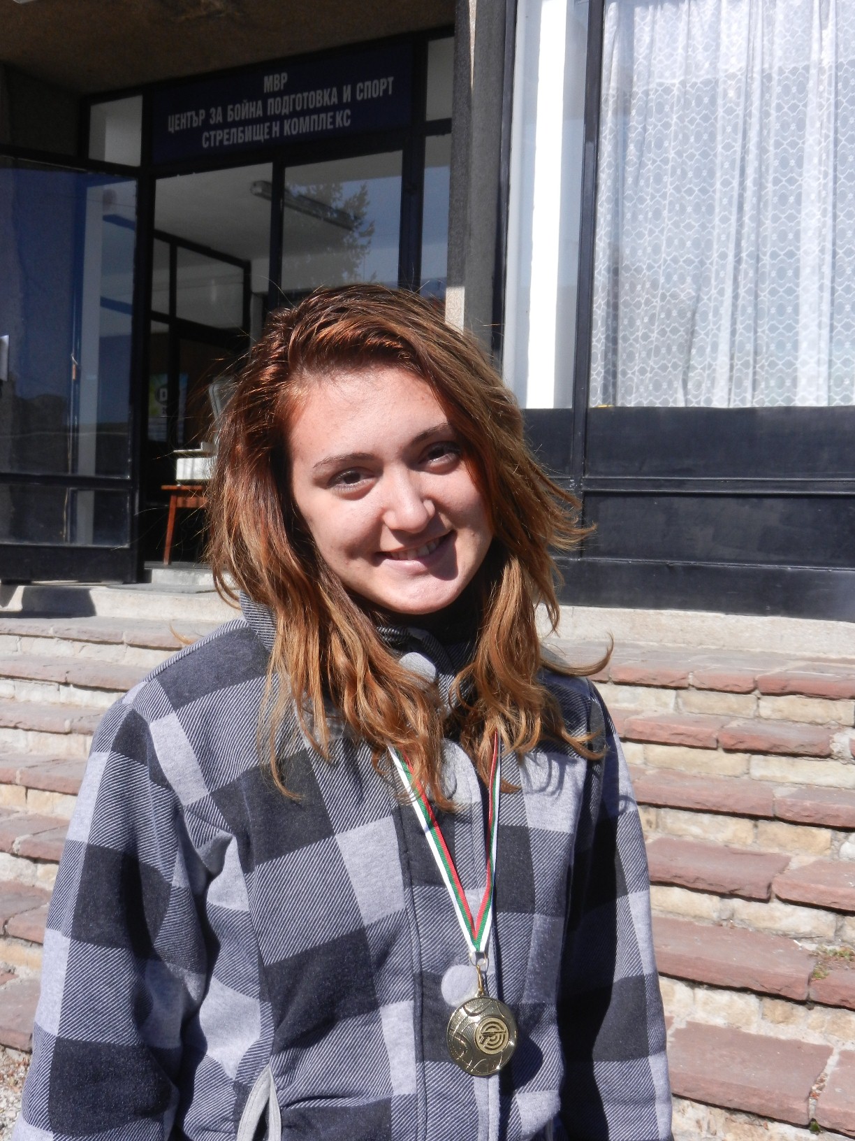 Кристиана Стоянова също се представи отлично на Държавното първенство по спортна стрелба с малокалибрено оръжие – тя взе златото при девойки старша възраст на 25 м. Това се случи в залата в кв. "Гео Милев“ в София в събота сутринта. Криси стана първа с цели 34 точки пред втората - Доли Павлова от спортен клуб "Левски“. Трета е друга представителка на синия клуб Стефани Сафарова.