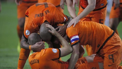 Унгария загуби шансовете си да се класира на бараж за световното първенство след позорна загуба с 1:8 при гостуването си на Холандия. "Лалетата" вече си бяха осигурили първото място, но не показаха никаква милост, а при повече желание можеха да стигнат и до двуцифрен резултат срещу безпомощните маджари. С хеттрик за домакините се прояви Робин ван Перси. Освен него във вратата на Адам Богдан се разписаха Кевин Строотман, Джърмейн Ленс, Рафаел ван дер Ваарт и Ариен Робен, а Шилард Девечери си вкара автогол. За гостите точен беше Балаш Джуджак от дузпа в 47-ата минута, когато резултатът вече бе 0:4.