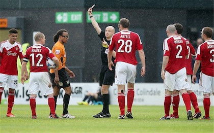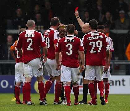 Едгар Давидс не само, че продължава да играе, но и очевидно не е загубил страстта си към играта. 40-годишният холандец с прякор "Питбула", който в момента е играещ мениджър на английския отбор Барнет, получи червен картон по време на мача на тима си срещу Рексъм от Конфърънс Премиър (петото ниво на английския клубен футбол).