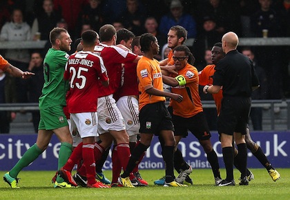 В 88-ата минута на двубоя, завършил при резултат 1:1, играчи на двата тима се сдърпаха на терена, а Давидс влезе в по-сериозна конфронтация със Стивън Райт от Рексъм. Преминалият през Аякс, Милан, Ювентус, Барселона и Интер Давидс разби устата на противниковия футболист и получи червен картон, а Стивън Райт също бе отстранен от игра. В този момент Барнет водеше с 1:0 в резултата, но гостите изравниха с гол в последната минута, а в добавеното време червен картон получи и още един играч на Рексъм.