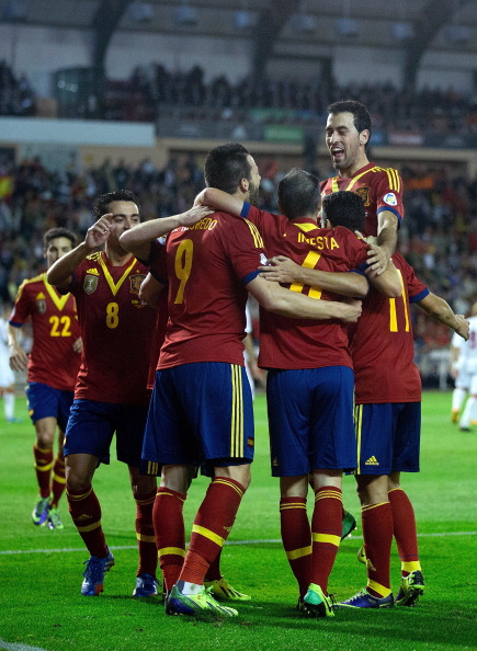 Настоящият световен шампион Испания вече и на теория има билет за Мондиал 2014, след като оглави крайното класиране в група "I". Тази вечер тимът на Висенте дел Боске спечели с 2:0 над Грузия в Албасете и изпревари Франция с три точки. Алваро Негредо (26) и Хуан Мануел Мата (61) се разписаха за иберийците.