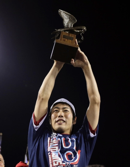 До края на мача от булпена на домакините излязоха общо петима риливъри, сред които Джуничи Тазава (W 1-0), получил победата заради един-единствен аут - третия в 7-ия ининг, а последен на хълма по традиция се качи клоузърът Коджи Уехара (S 5). 38-годишният японец затвори мача с 2 страйкаута в 9-ия и получи наградата за най-полезен играч (MVP) във финала на АЛ. От началото на плейофите ветеранът запази общо 5 победи на Ред Сокс, включително последните 3 от серията за титлата в лигата.
