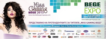 BEGE Expo 2013, което тази година ще отвори врати на 22 октомври, отново ще изненада своите посетители със забавна програма и много атракции. Балканското изложение на игралната и развлекателната индустрия за втора поредна година организира конкурса „Miss Gaming BEGE”, съвместно с модна агенция Visages Model Group. Претендентките за титлата ще представят брандовете на водещи оператори в игралната индустрия. След продължителни кастинги своите лица номинираха български водещи компании от сектора като Casino Ritz Пловдив, Алфастрийт Трейд БГ, Casino Efbet Sofia, верига игрални зали Palms Bet и Eldorado Bet, Casino Hrisantema, верига игрални зали Sesame, Casion Luxor Sofia и водещата лицензирана букмейкърска къща в България Еврофутбол.