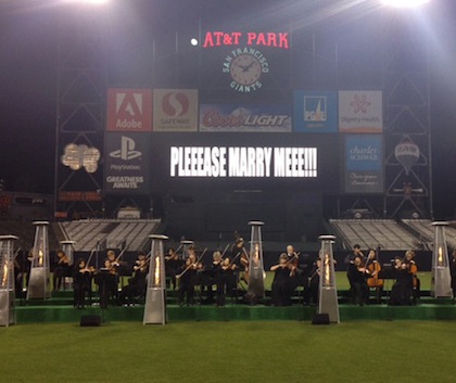 На стадиона е имало оркестър с 50 музиканти, а след като Ким е приела предложението на рапъра, са били пуснати десетки фойерверки и са зазвучали песните "Young and Beautiful" на Лана Дел Рей и хитът на самия Кание - "Knock You Down". Разбира се, Ким се е сдобила и с огромен 15-каратов диаментен пръстен.