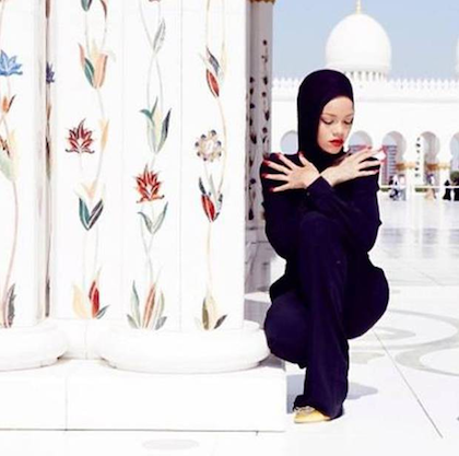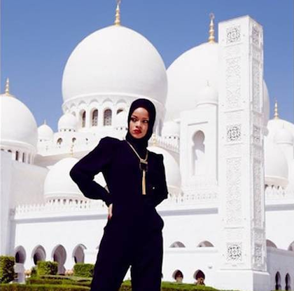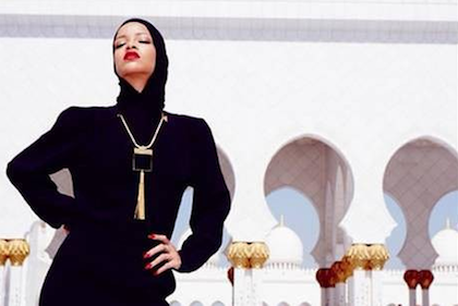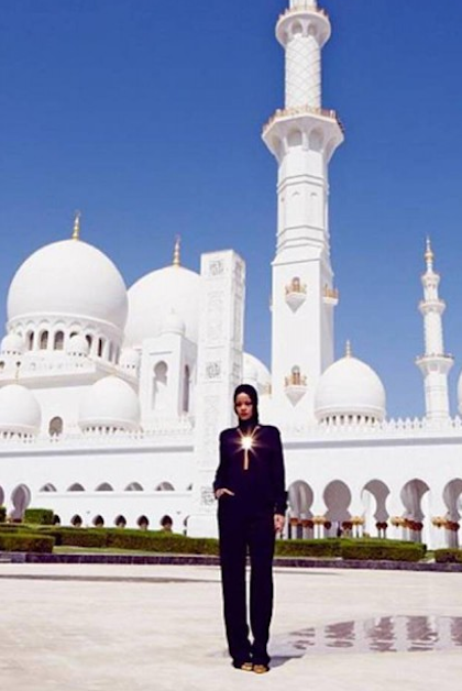 Риана успя да направи поредния световен скандал със снимки от турнето си. През уикенда певицата публикува поредните скандални снимки в социалната мрежа. На кадрите бившата на бейзболиста Мат Кемп позира пред Голямата джамия в Абу Даби, известна още като джамия Шейх Зайед, и дори се е забулила с бурка, като уж се опитва да спази строгите мюсюлмански закони. Въпреки това барбадоската перла успяла да ядоса гражданите и органите на реда и е била учтиво заставена да напусне известната забележителност.