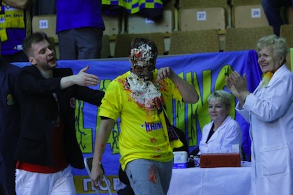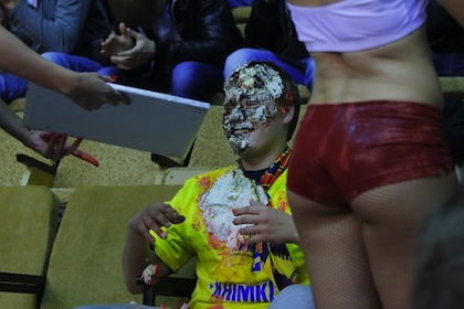 Мажоретките от Red Foxes сюрпризираха фен на мача между Красний Октябр и Химки от руското баскетболно първенство. За да демонстрират гостоприемство, сексапилните мажоретки се появиха на игрището в Двореца на спорта във Волгоград с торта, носена от една от тях. Най-ненадейно хубавицата лепна тортата на лицето на един от седналите на първите редове фенове. След това тя и колежките й размазаха остатъците от тортата по лицето на фена.
