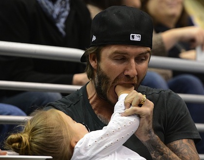 Дейвид Бекъм е луд от любов. По всичко личи, че дъщеричката му Харпър Севън наистина е най-важната жена в сърцето на бившия футболист, защото той не се отделя от нея. Вчера кланът Бекъм се наслади на поредното спортно събитие, като по време на почивката Дейвид и щерка му не пропуснаха да си поиграят. Татко Бекс обаче този път очевидно беше повече от забавен, тъй като беше щракнат буквално да яде наследницата си. Малката Харпър пък намери това за много смешно и не престана да се хили в прегръдките на татко си, който се правеше на лош и уж я изяждаше, докато тримата й братя се смееха отстрани. След като сложи край на футболната си кариера Дейвид Бекъм прекарва цялото си свободно си време със семейството и децата си.