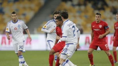 Динамо (Киев) разгроми гостуващия Тюн с 3:0 и постигна първа победа в група "G" на Лига Европа. Андрий Ярмоленко, Диумерси Мбокани и Олег Гусев отбелязаха головете за украинския гранд, който вече има 4 точки и излезе на второ място в класирането. В другия мач от групата лидерът Генк пропусна да запази пълния си актив, след като завърши 1:1 у дома с Рапид (Виена). Въпреки равенството, белгийците са лидери със 7 точки, а Рапид е на дъното в таблицата с 2 точки.