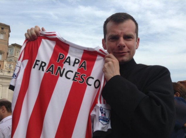 Подаръкът поднесе клубният свещеник на Съндърланд отец Марк Лайдън-Смит, който е на поклонение във Ватикана. Папа Франциск специално избра отец Марк сред 120-те хиляди, дошли да се срещнат с него, взе подаръка и гордо позира пред фотографи с фланелката на Съндърланд.
