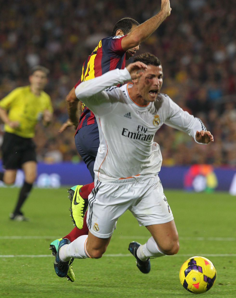 Големият лидер на Реал Мадрид Кристиано Роналдо е силно разочарован от неотсъдената дузпа в съботния мач с Барселона. Португалецът не можа да повярва, че Ундиано Майенко не свири нарушение в 71-вата минута, когато Хавиер Масчерано го повали в наказателното поле. "Беше чиста дузпа!", кресна CR7 след положението.