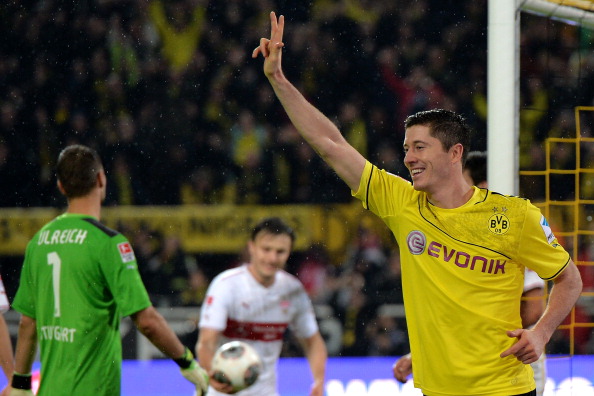 Отборът на Борусия (Дортмунд) надигра повече от категорично Щутгарт с 6:1 в домакинството си от 11-ия кръг в Бундеслигата. Домакините на "Сигнал Идуна Парк" демонстрираха прекрасен футбол, особено през втората част, и не оставиха шансове на своя съперник. "Швабите" първи откриха резултата чрез Карим Хагуи в 13-ата минута, но след това Сократис в 19-ата, Марко Ройс в 23-ата, хеттрик на Роберт Левандовски в 55-ата, 56-ата и 72-ата минута и попадение на Пиер-Емерик Обамеянг в 81-ата минута обърнаха нещата в полза на дортмундци. Така Борусия поне временно оглави класирането преди изиграването на останалите мачове от кръга.