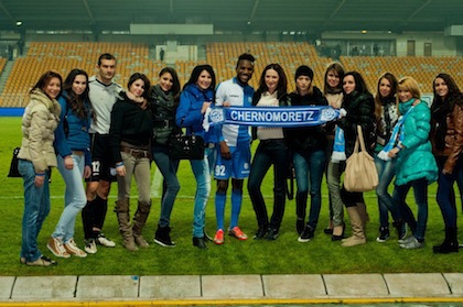 За втора поредна година отборът на Черноморец (Бургас) ще получи подкрепа от претендентките за титлата в конкурса Мис Бургас България 2013, който ще се проведе на 6 декември в гранд Хотел&СПА Приморец. 12-те финалистки за короната, придружени от миналогодишните победителки ще викат за „акулите“ тази събота в мача им срещу тима на Локомотив София, който започва в 18:00 часа на стадион „Лазур“.