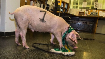 За какво става дума? По улиците на Хановер беше пусната свиня с шалче на отбора. Върху тялото на животното беше изрисувана емблемата на "96", както и №1. Пръв на прасето е налетял моторист, който за малко е успял да го избегне. Той е информирал полицаите, които са прибрали свинята.
