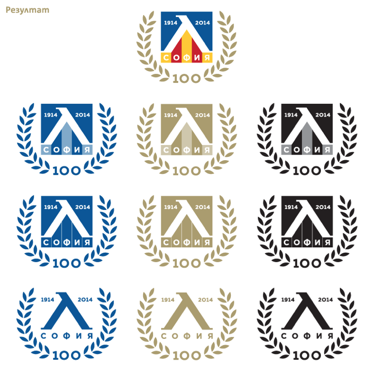 В юбилейната емблема на Левски София, историята и традицията се срещат с настоящето. Направен е преглед и анализ на всички настоящи и исторически емблеми на клуба. Разработката преминава през няколко различни междинни посоки и варианти преди да се достигне до финалния. Той е базиран на историческите емблеми, но преработен по нов и съвременнен начин. Запазена е характерната, уникална и обичана от всички левскари квадратна форма на емблемата. Премахнати са всички излишни елементи от графиката в квадрата – например, външната му рамка и разделителните линии между някои цветове, които в исторически план са имали технологична функция (да отделят два цвята един от друг), но не са необходими в настоящето. Получената графика е семпла, изчистена и съобразена с очакванията на привържениците.