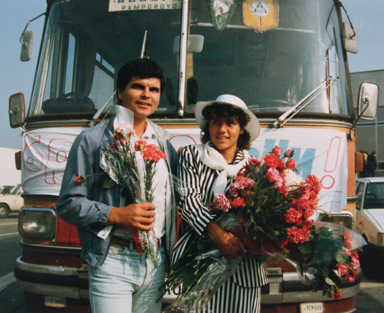 С треньора Ботко Трендафилов, който я пое от дете и я изведе до Олимп. Снимката е от посрещането в Смолян 1988 г.