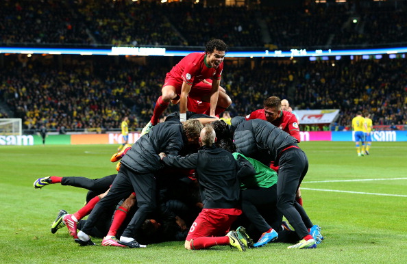 Португалия ще играе на Световното първенство в Бразилия, а Швеция не. Кристиано Роналдо ще бъде на Мондиал, Златан Ибрахимович - не. Иберийците спечелиха с 3:2 и гостуването си в Солна след космически три гола на Кристиано Роналдо (50, 77 и 79) в този така важен момент и се класираха за финалите с общ резултат 4:2. Ибра се отчете с две страхотни попадения, показа, че е големият лидер на "тре кронур", но уменията му не стигнаха, за да се противопостави на лузитаните и феноменалния им капитан с номер 7.
