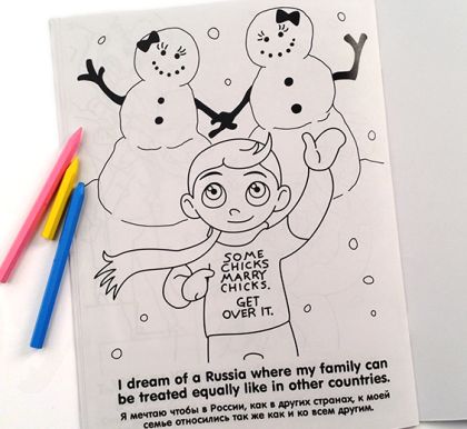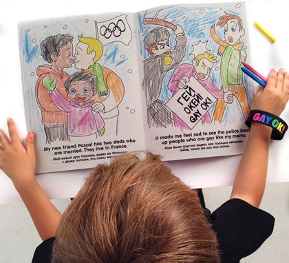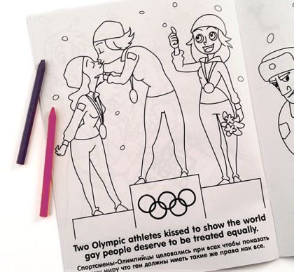 Детски книжки за оцветяване, пропагандиращи еднополовите сексуални отношения, ще бъдат раздавани на малчуганите по време на Зимните олимпийски игри в Сочи. За това алармира депутатът от Държавната дума Алексей Журавлев, който се натъкнал на сайт в интернет, съдържащ презентация на въпросното издание.