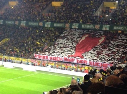 Борусия (Дортмунд) записа тежка загуба с 0:3 от Байерн (Мюнхен) у дома, но това в никакъв случай не сломи феновете на тима. "Жълто-черните" ултраси бяха изпълнили до краен предел "Сигнал Идуна Парк" и засвидетелстваха обичта си към футболистите на Юрген Клоп, независимо че на терена те бяха разбити. Вместо запалянковците да си тръгнат смълчани след последния съдийски сигнал, те показаха завидна подкрепа все едно са спечелили.