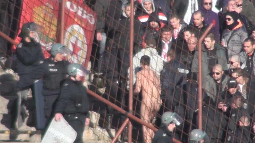 Голям скандал се разрази в сектора с привърженици на ЦСКА по време на мача с Ботев (Пловдив). Част от "червените" фенове набиха и съблякоха чисто гол седящ сред тях човек, за когото се предполага, че е привърженик на Левски. След намеса на полицията той бе изведен от трибуната.