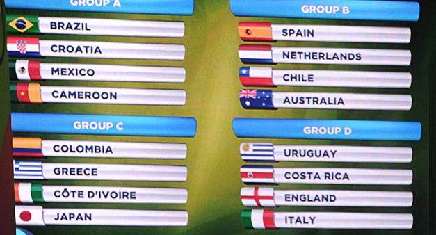 За първи път в историята три отбора световни шампиони попаднаха в една група на Мондиал. Това се случи на 20-ите световни финали в Бразилия, където групата на смъртта е "D". Жребият в Мата де Сао Жоао определи за две места на осминафиналите да спорят четирикратните първенци на планетата Италия, които стартират срещу световния шампион от 1966 г. Англия. Както и двукратният носител на златните медали от световен шампионат Уругвай, който пък стартира с аутсайдера в тази група Коста Рика.