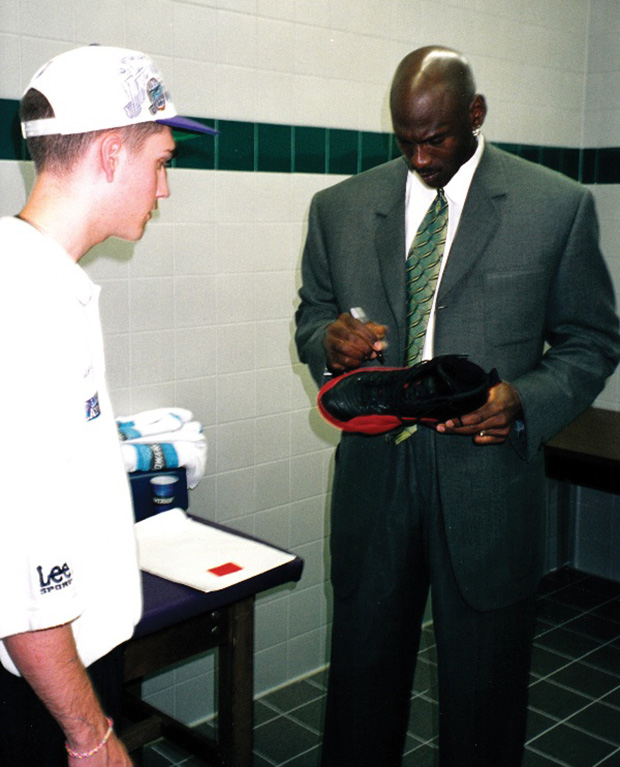 Труман доказа, че кецовете са истински, показвайки снимка, на която ясно се вижда как считаният от мнозина за най-велик баскетболист в историята оставя автографа си върху маратонките, моменти след като ги е подарил на младока.