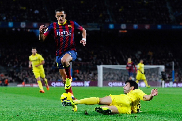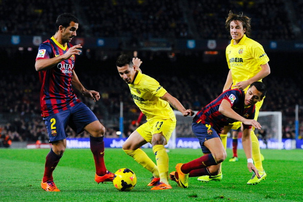 Двубоят започна с продължително владение на домакините и прибрана игра на гостите от "Ел Мадригал". Каталунците разцъкваха в търсене на пространства. В шестата минута Алекс Сонг разтресе близката греда. Камерунецът овладя при съмнения за игра с ръка и с мощен шут от осем метра нацели стълба. В 11-ата Неймар намери Сонг в наказателното поле, но бившият играч на Арсенал не намери точно развитие с голов пас.