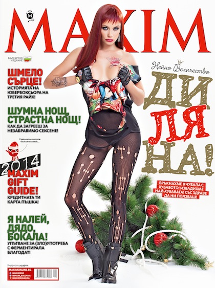Най-хубавата по нашите географски ширини се завръща на корицата на най-хубавото списание по тези територии. Седем години след предишната си поява в MAXIM, Диляна Попова отново ни радва. Този път коледно. Но тъй като не вярваме в чувала с подаръците на добрия старец, се разбунтувахме, резнахме елхата и пънкарясахме. Лейди Ди – също!