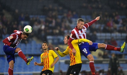 Носителят на Купата на краля Атлетико Мадрид се класира за 1/8-финалите на турнира след втора победа срещу третодивизионния Сант Андреу. Преди седмица "дюшекчиите" бяха разгромили съперника си с 4:0 като гост, но срещата "Висенте Калдерон" се оказа много по-трудна за тях и успехът с 2:1 дойде едва в добавеното време. Победният гол за тима на Диего Симеоне отбеляза защитникът Тоби Алдервейрелд. Преди това гостите изненадващо поведоха с попадение на Алберто Родригес Кароса преди почивката, а младокът Ектор Ернандес изравни за Атлетико в 79-ата минута. През първото полувреме домакините пропуснаха и дузпа чрез Адриан Лопес.