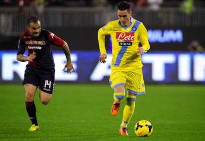 В 5-ата минута Нене прати топката в мрежата на Хосе Рейна, но голът му беше отменен заради засада. Малко по-късно централният нападател на Каляри отново беше оставен непокрит и домакините поведоха. В 14-ата минута голмайсторът се контузи, а в средата на полувремето Наполи стигна до изравняване. Горан Пандев беше задържан в наказателното поле и Игуаин реализира дузпата за 1:1.