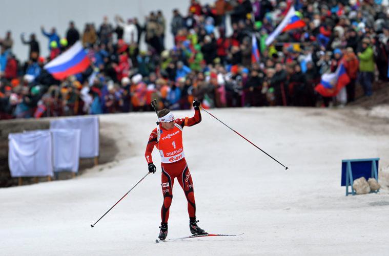 Ветеранът Оле Ейнар Бьорндален (Норвегия), който на 27 януари ще навърши 40 години, беше близо до 94-а победа в кариерата си, но направи два пропуска при последната си стрелба и в крайна сметка финишира втори на 35.6 секунди зад Свендсен. Бьорндален, който е олимпийски шампион в дисциплината от Солт Лейк Сити 2002 и четирикратен световен първенец, намери място на подиума за 168-и път в кариерата си в голямо състезание.